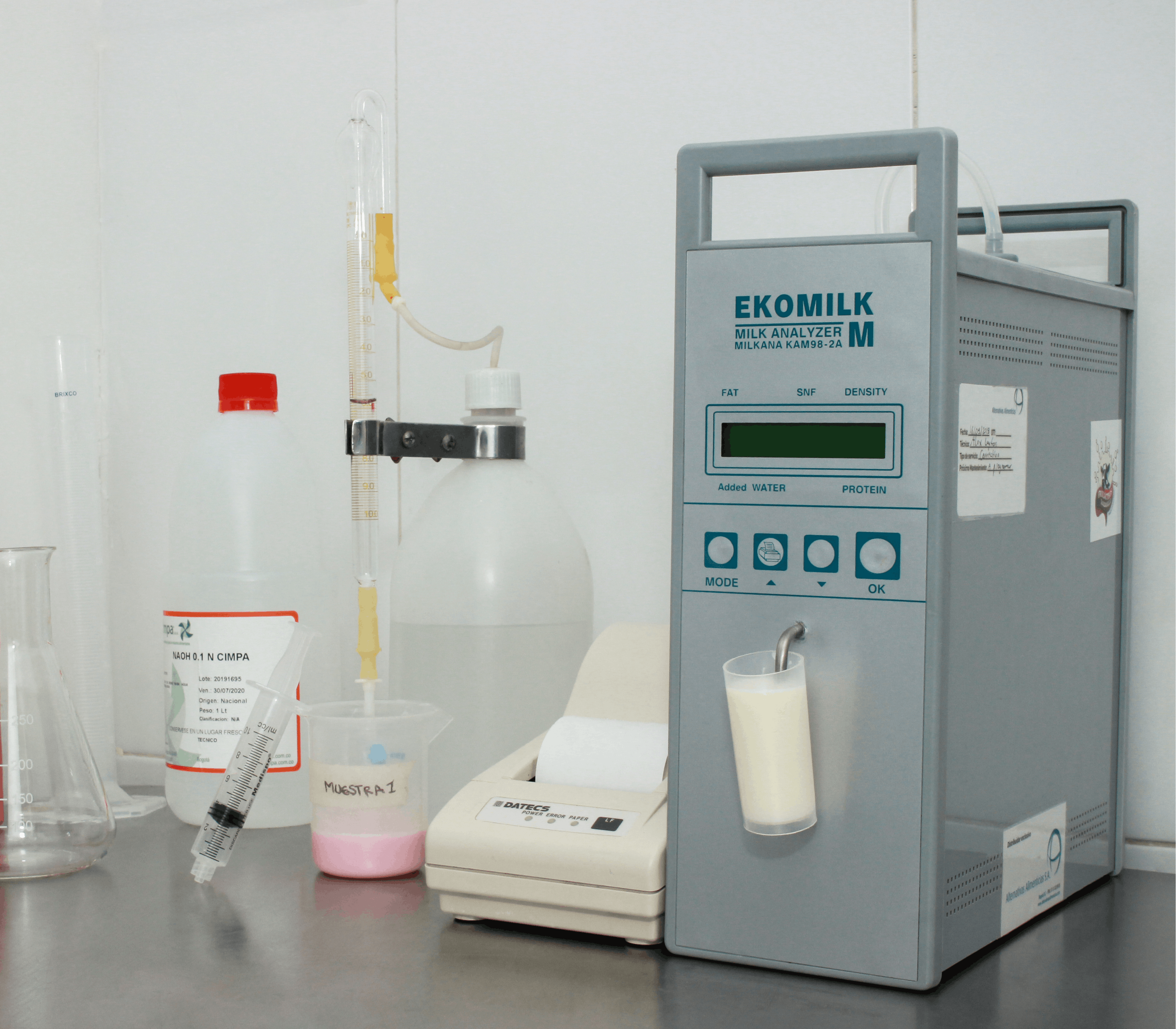 It is the area of our company where once received the raw material, it is decided which of them goes for each procedure, takes a general sample of this, taking it to the Ekomilk which allows title water, protein, density and fat of the raw material with which we make our products.