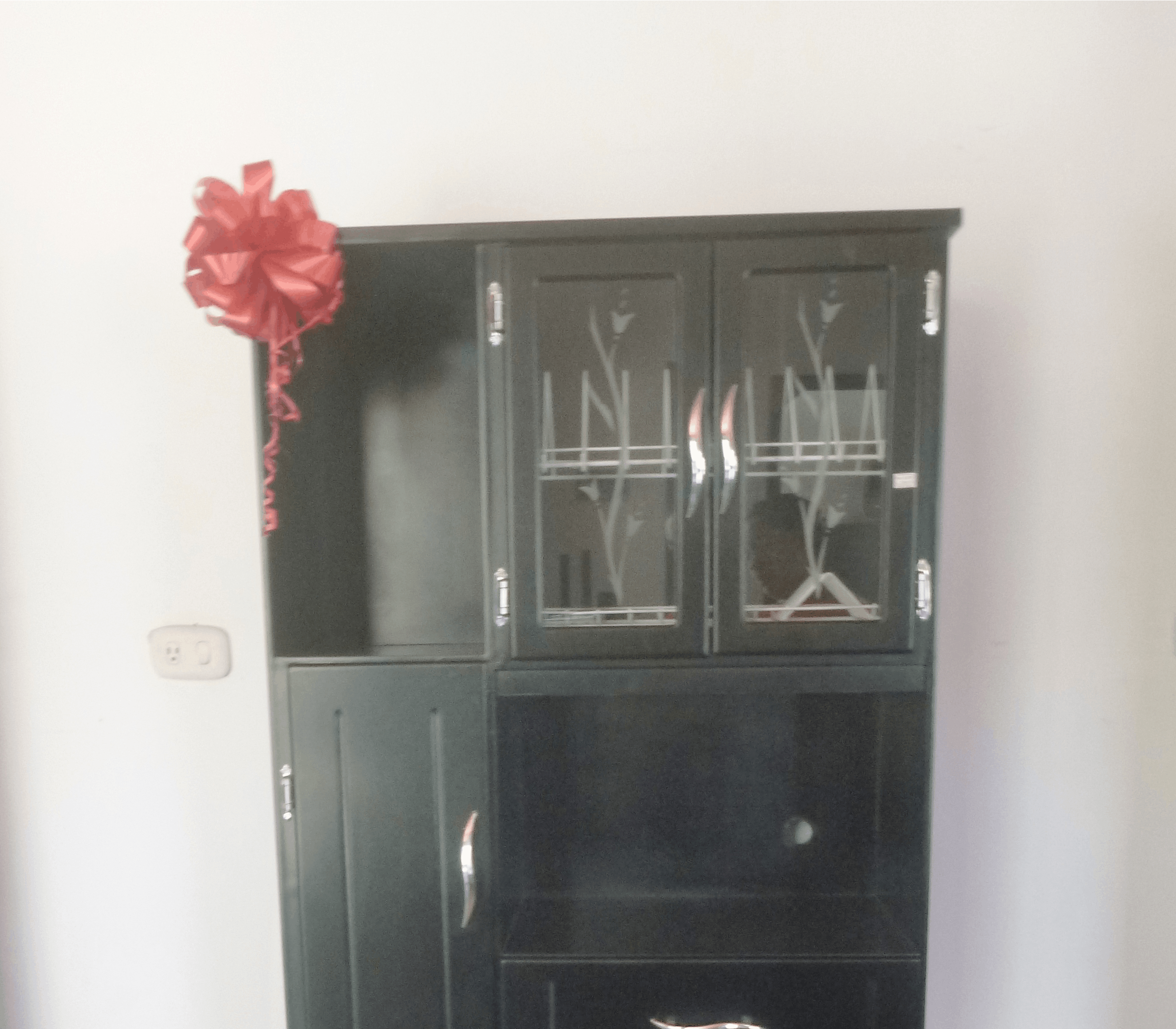 Special kitchen cupboard to place microwave, with space to display the dishes and ample spaces with shelves and drawer to store utensils and food, has slides for better mobility and transfer. available in black, brown and white with black, two years warranty for mismatch or comegén and free transfer in Roldanillo and its surroundings.